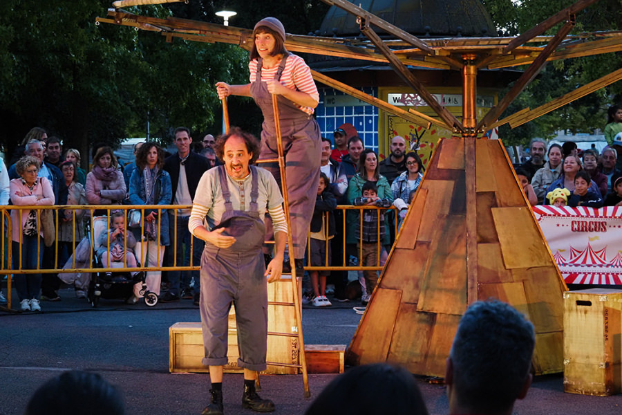 Dos payasos. Un espectáculo de clown para todos los públicos donde dos montadores se afanan por terminar de armar una vieja atracción de feria a tiempo de abrir para su público, que ha llegado antes de lo esperado. ¡Disfrutad del viaje!